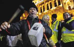 Piros Télapó-sapkák sokasodnak a József nádor téren. Tele a puttonyunk! – hirdeti a molinó a színpad fölött. Ám nem óriási ajándéközön buggyan ki belőle, hanem az…