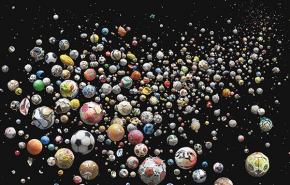 769, tengerpartra sodort focilabdából készített, Büntető című installációjával hívja fel a figyelmet a tengerek szennyezésére egy brit fotóművész a foci-vb ideje alatt.
