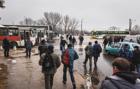 14 óra 10 perc. Nyílik a kapu, kiömlik rajta ötszáz ember. Hideg van, néhányan ugyan rágyújtanak vagy a kocsma felé veszik az irányt, de a többség a buszokhoz siet. Vége a munkanapnak.…