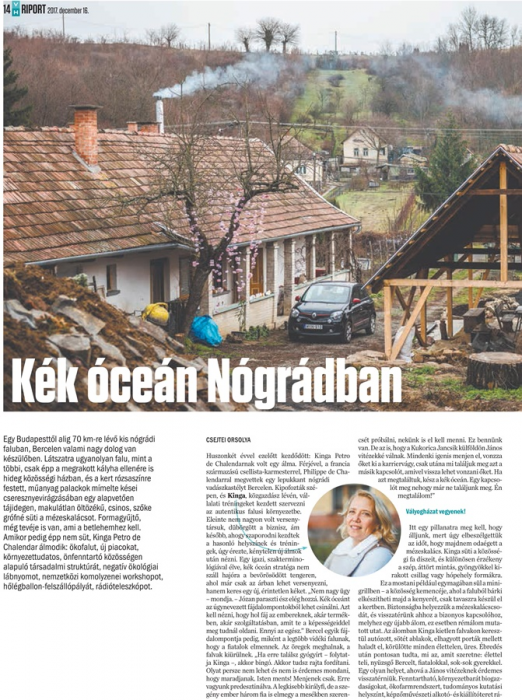 Csejtei Orsolya riportja "Kék óceán Nógrádban" címmel olvasható a friss Vasárnapi Hírekben.