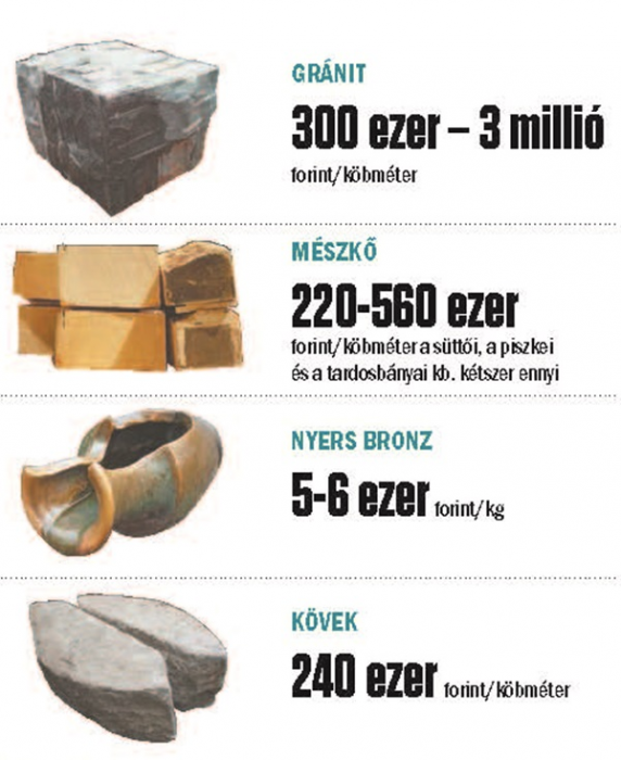 Minden szobor alapanyaga más árban van, attól is függ, hogy honnan, melyik bányából származnak a kövek, mekkora a méretük, milyen a tisztaságuk, a feldolgozás nehézsége – erre jön még a szobrász-, az öntő faragó-, és egyéb munkák díja.