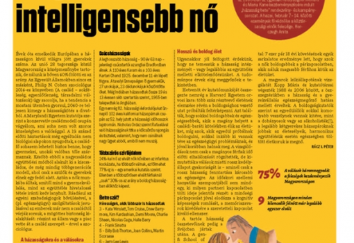 A tartós házasság összetevőinek pedig a Svájcban jártak utána. A genfi School of Business kutatói több mint ezer pár kapcsolatának kulturális együtthatóit szortírozták az évtizedfordulón, mígnem arra a megállapí tásra jutottak, hogy akkor működőképes egy házasság, ha a vőlegény öt évvel idősebb az aránál, ugyanaz a kulturális hátterük, és a hölgy legalább 27%-kal intelligensebb a férfinál! Állítólag ebben a konstellációban ötödével meghosszabbítható és boldogabbá tehető egy házasság a többihez képest.