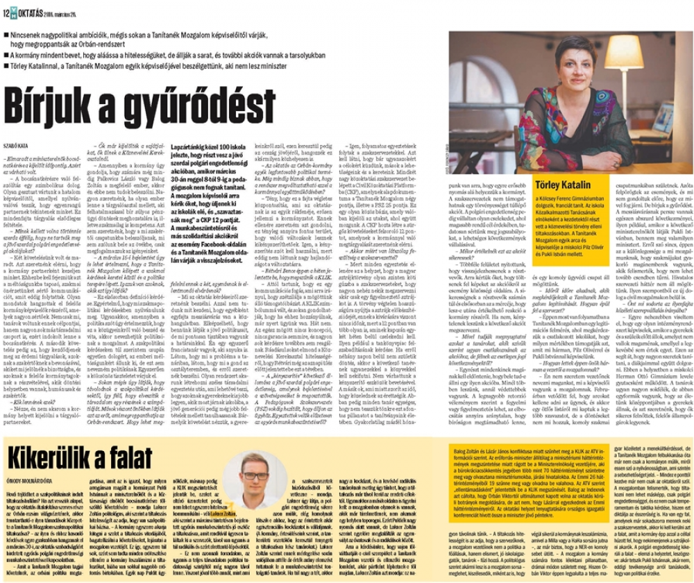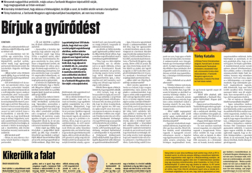 "Bírjuk a gyűrődést" címmel Törley Katalinnal, a Tanítanék Mozgalom egyik képviselőjével beszélget a friss VH 12-13. oldalán munkatársunk, Szabó Kata.
