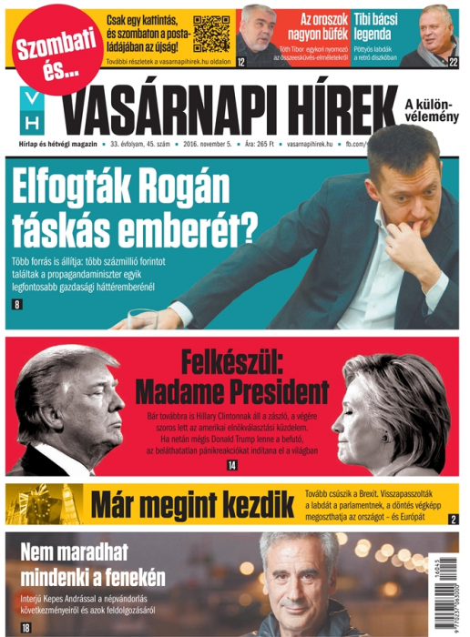 A Vasárnapi Hírek már szombaton megjelent, és a nyitva tartó árusoknál a hétvégén és a jövő héten is, következő számunk megjelenéséig megvásárolható. Előfizetőinknek már szombaton házhoz visszük!