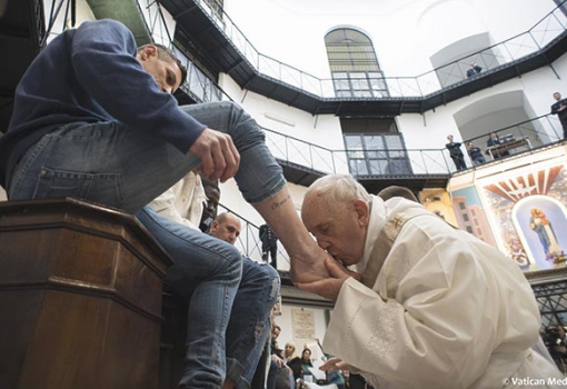 A pápa a húsvéti liturgia során számos gesztussal jelzi, menynyire rendíthetetlenül védelmezi a társadalom kirekesztettjeit. Nagycsütörtökön a Regina Cieli börtönbe látogatott, ahol szentmisét mutatott be, és 12 elítélt lábát mosta meg. Már hagyományosnak mondható, hogy börtönben végzi az ilyenkor szokásos szertartást.