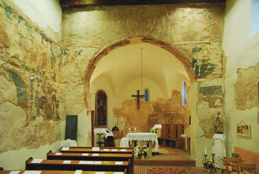 Ilyen fazsindelyes templomot csak a mesékben szoktak rajzolni. Pedig ez az épület – na, jó, alapjaiban – már a 12–13. század óta áll. Először még torony sem volt hozzá, száz év múlva az is lett. Egyhajós, de éppen arra elegendő, hogy megérezze az utazó, rajta kívül is vannak dolgok, földön s égen; belső falain pedig málló freskók hirdetik, hogy ide nem csak az Urat imádni jártak egykoron, hanem magyarázták is a vallás tanításait. Akit errefelé vet az útja, érdemes megállni falainál.