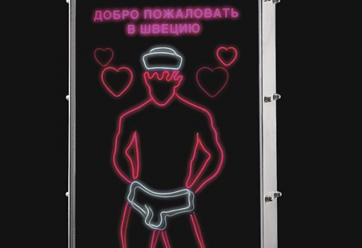 Melegekkel tartják távol az oroszokat. - „Erre gyere, ha meleg vagy”, morzézza egy különös szerkezet a Stockholmhoz közeli tengerfenéken. A masina egy alsónadrágos matróz neonnal megvilágított rajzával is segít a tájékozódásban.