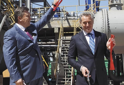 Dmitro Firtas (jobbra) fénykorában, Janukovics ukrán elnök oldalán. Barátja bukása után nem kellett sokáig várni őrizetbe vételére -fotó: Mykhailo Markiv, Reuters