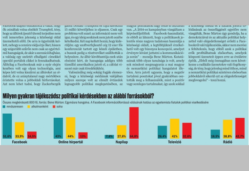 Összes megkérdezett 800 fő, forrás: Bene Márton: Egymásra hangolva. A Facebook információforrássá válásának hatása az egyetemista fiatalok politikai viselkedésére