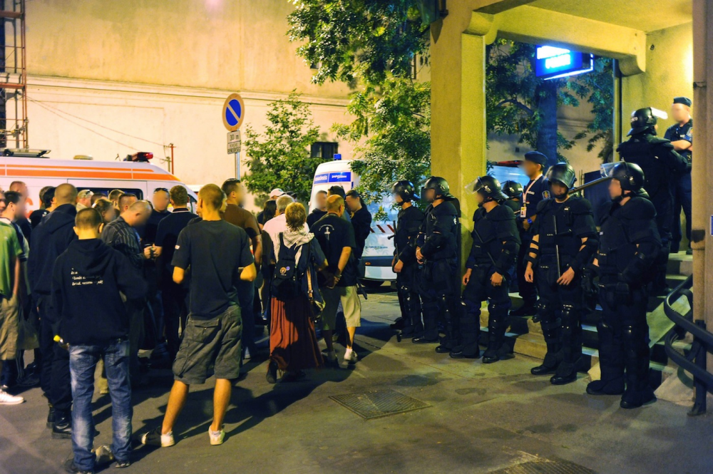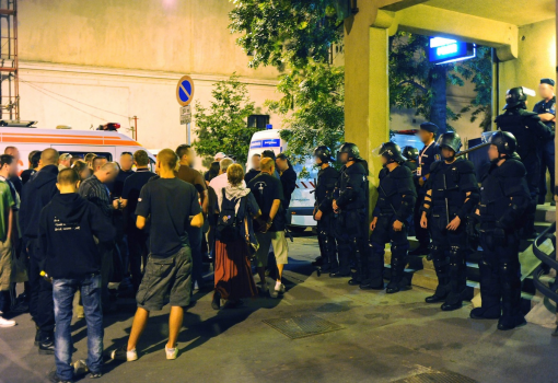 Rendőrök és tiltakozók állnak péntek éjjel a III. kerületi rendőrkapitányság előtt (képünkön). Korábban a Hajógyári-sziget K-hídjánál a rendőrök előállították Zagyva György Gyulát, a Hatvannégy Vármegye Ifjúsági Mozgalom (HVIM) tiszteletbeli elnökét, a Jobbik országgyűlési képviselőjét. A HVIM tagjai és szimpatizánsok a Tímár utcai rendőrkapitánysághoz vonultak, követelve Zagyva szabadon bocsátását. A rendőrkapitányság bejáratait rohamrendőrök zárták le. Összecsapásra nem került sor, de a környéken mindenkit igazoltattak. Korábban a HVIM szimpatizánsai jegy nélkül próbáltak meg bejutni a Sziget fesztiválra. Az MTI helyszíni tudósítása szerint Zagyva a fesztivál főbejáratához szervezett tüntetésen – amelyet eredetileg a magas benzinárak elleni tiltakozásul a sziget területére hirdettek meg, de azt a rendőrség nem vette tudomásul, mivel a fesztivál helyszíne magánterületnek minősül a rendezvény idején – felszólította az embereket, próbáljanak együtt bemenni a rendezvény területére. A mintegy 70 tüntető megindult a főbejárat felé. A biztonsági őrök és rendőrök feltartóztatták őket, ezért több tüntető elállta az utat a fesztiválozni szándékozók előtt, akik ekkor csak egy kordonkapun tudtak bejutni. Végül a rendőrség számolta fel a blokádot. Zagyvát előállították, mire ő élt mentelmi jogával, így vele szemben szabálysértési eljárás nem folytatható – közölte a rendőrség szombaton. (A Jobbik egyébként évek óta küzd a mentelmi jog eltörléséért – a szerk.) „Zagyva György Gyula nem a Jobbik, hanem a Hatvannégy Vármegye Ifjúsági Mozgalom nevében vett részt a tüntetésen, ezért a Jobbik nem tervez semmilyen lépést az ügyben” – kommenálta az Indexnek az eseményeket Dúró Dóra, a párt szóvivője. „Ugyanakkor sajnáljuk a történteket, hiszen ez egy bejelentett tüntetés volt, így a felelősség a rendőrségé és a fesztivál szervezőié, akik nem voltak hajlandóak tárgyalni a tüntetőkkel” – jegyezte meg.