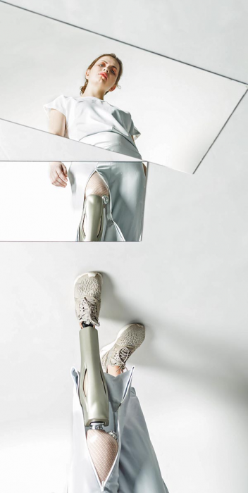 A baleset következtében amputáción átesett modell, Lukoviczki Réka számára készített kapszulakollekció darabjai amolyan pret-aporter öltözékek (Györök Borbála és Nagy Adrienne munkái). Réka Robotlány néven blogot vezet, előadásokat tart, divateseményeken vesz részt, hogy motiválja a hozzá hasonlóakat. A teljes elfogadáshoz neki is göröngyös út vezetett, de ma már úgy válogat protézist, mint más harisnyát: van műanyag csipkés darabja is. Ruhája népmesei módon mutatja is a lényeget meg nem is: a hiányzó oldali nadrágszárra, a térd fölé cipzárat szereltek, hogy az aktuális kedélyállapotától függően, ha akarja, elrejthesse, ha akarja, kivillanthassa a protézislábat.