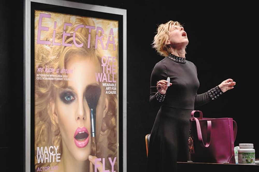Rujder Vivien alakja mindvégig titokzatos, leplezi, milyen elvek mentén is sürög-forog ebben a világban, mert pontosan tudja, aki dolgozik, időnként le kell nyelnie ezt-azt. Tasnádi Bence az önfeladás mintaképe. Pelsőczy Réka (képünkön) elképesztő erős alakítása gyilkos: plasztikusan ábrázolt szerkesztőnője maga a megtestesült trendi lady.