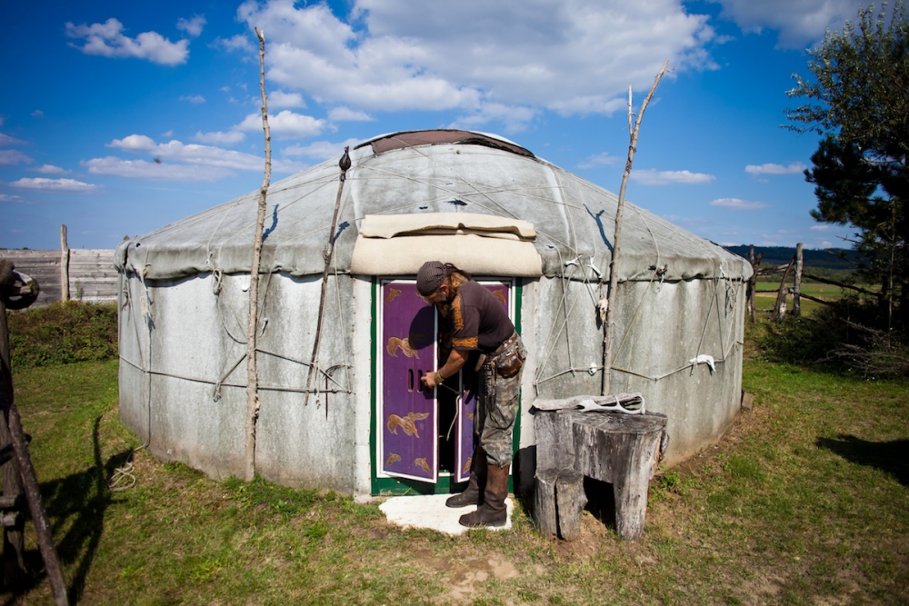 – Itt én vagyok élet és halál ura – állítja, nekem pedig eszem ágában sincs kételkedni. Követem inkább szótlanul, és nézem is meg nem is a halomban heverő koponyákat. Van köztük őz, szarvas és kecskeforma is. S ahogy közeledünk egy hatalmas, sátorszerű építmény felé, úgy távolodik a világ. Nem vezet ide műút, nincs a területen se villany, se vezetékes víz, se gáz. Van viszont tucatnyi, földbe vájt épület: paleoszibériai jurta, új kőkori, szkíta és Árpád-kori ház. Saját kezűleg készítette mindegyiket, de nem kapkodott: harminc év kellett hozzá, no meg fa, sár, állati bőr és néhány jó barát. És vajon még mi? – töprengek, miközben lépek be a dombtetőn álló építménybe és egyben ugrok is vissza – kétezer évet a történelemben.