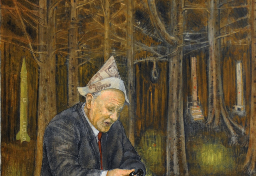 Rényi Krisztina Kádár János kora című alkotásán Kádár egy akasztófaerdőben ül és sakkozik. Picivel több az arcán a bibircsók, mint indokolt. A fekete bábu épp leüti a fehér királynőt, amelynek dőltében láthatjuk: véres a talpa. A kép alján a kor „szimbólumai”: (benyomott, nem tökéletes) focilabda, rádió, persely, óriási zöld rakéta, mindez ügyetlenül megvalósítva – nem úgy, mint a művész meseillusztrációin, amik egyébként szépek.