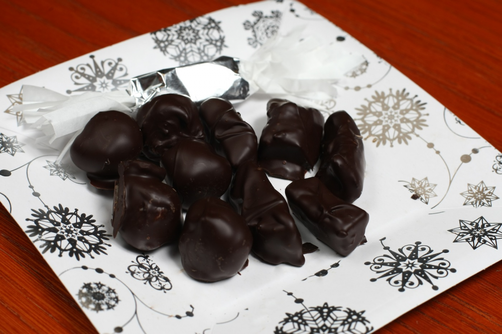 Recept: Kétféle szaloncukor vett részt a teszten. Az egyik a zselést helyettesítő birsalmasajtos, a másik marcipános. De lehet a töltelék aszalt gyümölcs, vagy bármi, ami kellőképp őrzi alakját és állagát az ünnepek alatt. A birsalmasajtot hasábokra vágjuk, a marcipános tölteléke pedig a bárhol kapható marcipán burgonyából készült gombóc, amelybe gyümölcsdarabkákat nyomkodnak a gyerekek. A lényeg (és egyben a feladat bonyolultabb fele) a csokoládébevonás. Az a fontos, hogy az étcsoki legalább 58 százalékos kakaótartalmú legyen, a fehér csokoládé pedig igazi kakaóvajból készüljön. Húszdekányi bármilyen csokoládét kockára törve gőzfürdőre teszünk, folyton kevergetve megolvasztjuk, majd a gőzről levéve simára keverjük. Úgy szilárdul meg, hogy a maradék 10 deka csokoládét szilárd állapotban kell hozzáadni. Legalább 10 percig kevergetjük, amíg bele nem olvad a masszába. Így a máz 30–32 fokra lehűl, és nem fogja a tölteléket megolvasztani. Ettől az eljárástól – vagyis a temperálástól – lesz fényes a csokoládéréteg. Amíg dolgozunk vele, folyamatosan kavargatjuk, nehogy megszilárduljon. Ezek után előveszünk egy villát és egy sütőpapírt. A villára ráfektetünk egy töltelékdarabkát, többször megmártjuk a csokoládéban. A fölösleget lecsöpögtetjük, a bevont szaloncukrot pedig kitesszük a zsírpapírra, ahol pár perc alatt a csokoládé megszilárdul. Ezután már csak csomagolni kell.