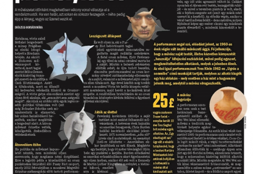A fiatal magyar költő egy egész versciklussal tisztelgett Chris Burden munkássága előtt, saját szűrőjén keresztül mutatva rá az egykori performanszok napjainkban is értelmezhető aspektusaira.