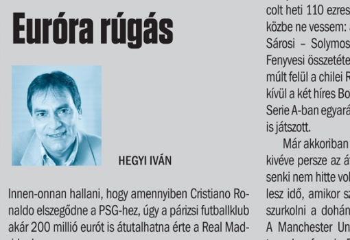 A Manchester United 105 milliót fizetett a Juventusnak a francia Paul Pogba visszavételéért, a Real Madrid éppen 100 milliót folyósított a Tottenhamnek Gareth Bale szerződtetéséért, a Juventus 90 milliót pengetett le a Napolinak Gonzalo Higuain megszerzéséért, a Sanghaj 70 milliót utalt át a Chelsea-nek a brazil Oscar megkaparintásáért. Na most, ha Oscar megér hetvenet, Higuain kilencvenet, Bale pedig százat, akkor Cristiano Ronaldóért igazán nem lenne sok az a kétszáz…