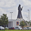 Méltóságteljesen ücsörög a róla elnevezett sétányon, a XIII. kerületben, a Viza és a Révész utca között.