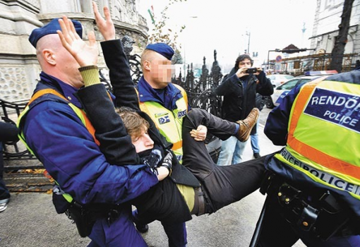 Megszüntette a rendőrség a nyomozást a gyilkosságért korábban 10 évre elítélt Sz. Ferenc ellen, aki márciusban társával együtt erőszakosan lépett fel a Fidesz-székháznál demonstráló egyik egyetemista ellen – értesült a Kettős Mérce blog. Az indok: a lány elleni fellépéskor nem a személyi szabadságát korlátozták, hanem „testi épsége érdekében, a székház életveszélyes területéről biztonságos helyre vitték” a leomlással fenyegető vakolat elől a „Fidesz-aktivisták”. Az iratok szerint bár Sz. Ferencnek nem volt joga fellépni a demonstrálók ellen, társának, Kubatov Gábor személyi titkárának igen, hiszen őt felhívta a Fidesz egyik EP-képviselője, ezt pedig a rendőrség segítségkérésnek értékelte. A Fradi Security szurkolói koordinátora márciusban azt írta Facebookon: „a Fidesz-székháznál kialakult kaotikus állapotokra tekintettel” erkölcsi kötelességének érezte, hogy megpróbálja „ezt a nehéz helyzetet orvosolni”, és azt állította, hogy senki nem bízta meg semmivel. A tüntetők szerint bár a BRFK 10 tanút hallgatott meg, a határozatot Kubatov titkárának vallomása uralja, míg a 6 meghallgatott tüntető közül csak 3 vallomása került a szövegbe, egy-egy bekezdés erejéig.