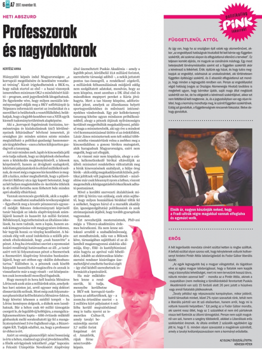 Aki a „korrupció fogalmának tisztázása, természetrajza és kialakulásának (sic!) körülményeinek feltárásában” bővítené ismereteit, jó országban jár: minden szinten szinte minden megtalálható a politikai-gazdasági haszonszerzés tárgykörében – ezen a héten kifejezetten gazdag volt a tananyag.