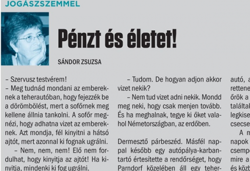 – Meg tudnád mondani az embereknek a teherautóban, hogy fejezzék be a dörömbölést, mert a sofőrnek meg kellene állnia tankolni. A sofőr megnézi, hogy adhatna vizet az embereknek. Azt mondja, fél kinyitni a hátsó ajtót, mert azonnal ki fognak ugrálni.