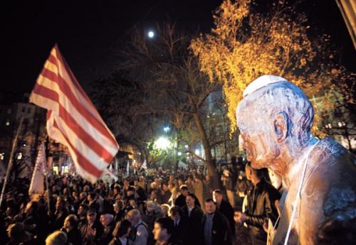 Kedd este egy magyar – no meg európai – parlamenti párt által szervezett, hivatalosan engedélyezett és a rendőrség által biztosított rendezvényen a résztvevők egy – „Én tehetek Trianonról” feliratú – táblát és kötelet hurkoltak az első magyarországi köztársaság elnöke, Károlyi Mihály szobrának nyakába.