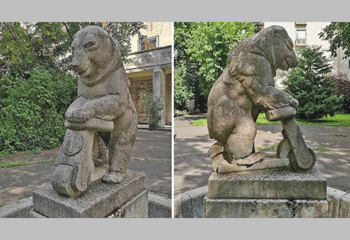 A kőmackó lassan hat évtizede hajtja a kétkerekű járgányt a Honvéd téri, egykori honvédelmi minisztériumi tiszti bérház belső udvarának mozdulatlanságában. Az egyes rajtszámmal ellátott versenyző 1959- ben került a kör alakú kőmedencébe, amely akkoriban állítólag még vizet is lövellt. Biztosat nem tudni arról, hogy Óra Sándor szobrászt egészen pontosan miért is kérték fel egy rollerező medvebocs megalkotására, de a szobor körül keringő anekdoták szerint Kádár János vadászó, fegyveres keze lehet a dologban. A városi legenda arról regél, hogy amikor Kádár elvtárs egy alkalommal vendégül látta a Szovjetunió első emberét, Leonyid Iljics Brezsnyevet, és együtt indultak vadászni a Gerecsébe, a Szovjet Kommunista Párt főtitkára medvét szeretett volna lőni. Mivel akkoriban még más idők jártak, mint manapság, és a hegyeinkben medve épp annyira volt gyakori, mint az a bizonyos fehér holló, szereztek neki egy kiöregedett cirkuszi jószágot, és odaterelték a magasles közelébe. A pocsék lövőnek számító Brezsnyev állítólag elvétette a mackót, aki annyira megijedt a puskadördüléstől, hogy hanyatt-homlok elmenekült a helyszínről. A rét szélére érve észrevett egy halom letámasztott biciklit, és előjött belőle a cirkuszi reflex: felpattant az egyik kerékpárra, és elhajtott az életére törő elvtársak elől.