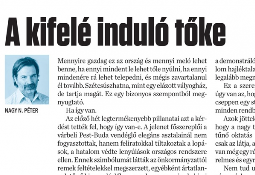 Az előző hét legtermékenyebb pillanatai azt a kérdést tették fel, hogy így van-e. A jelenet főszereplői a várbeli Pest-Buda vendéglő elegáns asztalainál nem fogyasztottak, hanem feliratokkal tiltakoztak a lopások, a hatalom védte lenyúlások országos rendszere ellen. Ennek szimbólumát látták az önkormányzattól remek feltételekkel megszerzett, egyébként ártatlannak tűnő kis vendéglőben, amely egy nem is oly kicsi hálózat része. A hely embere az általa kihívott rendőrökkel akarta elintézetni az elintéznivalókat. Hogy rakják ki ezeket. Egy ideig biztos volt a dolgában és az övéiben, a rendőrökben, ám szembesülnie kellett azzal, amivel oly sokan, amikor az albérlő nem fizet, de ki sem akar menni: a rendőr közölte, hogy a szabályok szerint jegyzői határozat nélkül nem tehet semmit. Kérjenek birtokvédelmet a jegyzőtől. Vasárnap! Másodpercekig álltak egymással szemben szereplőink, és gondolkodtak. Mindkét fél fogta, hogy ez nehéz helyzet, és nemcsak a kamerák miatt, hanem azért is, mert a másiknak is nagyon méltányolható érvei vannak. Ez volt maga a politika! Felmérték, mekkora a mozgásterük, mik a kockázataik. Intelligensek voltak egy reménytelen helyzetben.