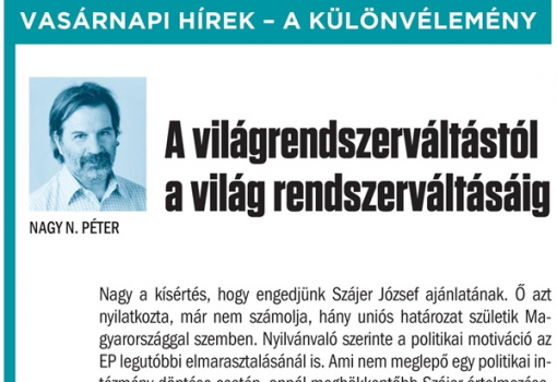VASÁRNAPI HÍREK – A KÜLÖNVÉLEMÉNY. - Nagy N. Péter vezércikke.